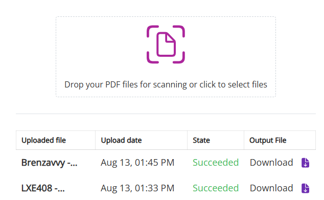 Just drag and drop your PDF document onto the box at the top of the screen. DO Patent will begin processing the patent and will give you status updates. Once the patent has been processed, a downloadable Excel file is generated and available for download.